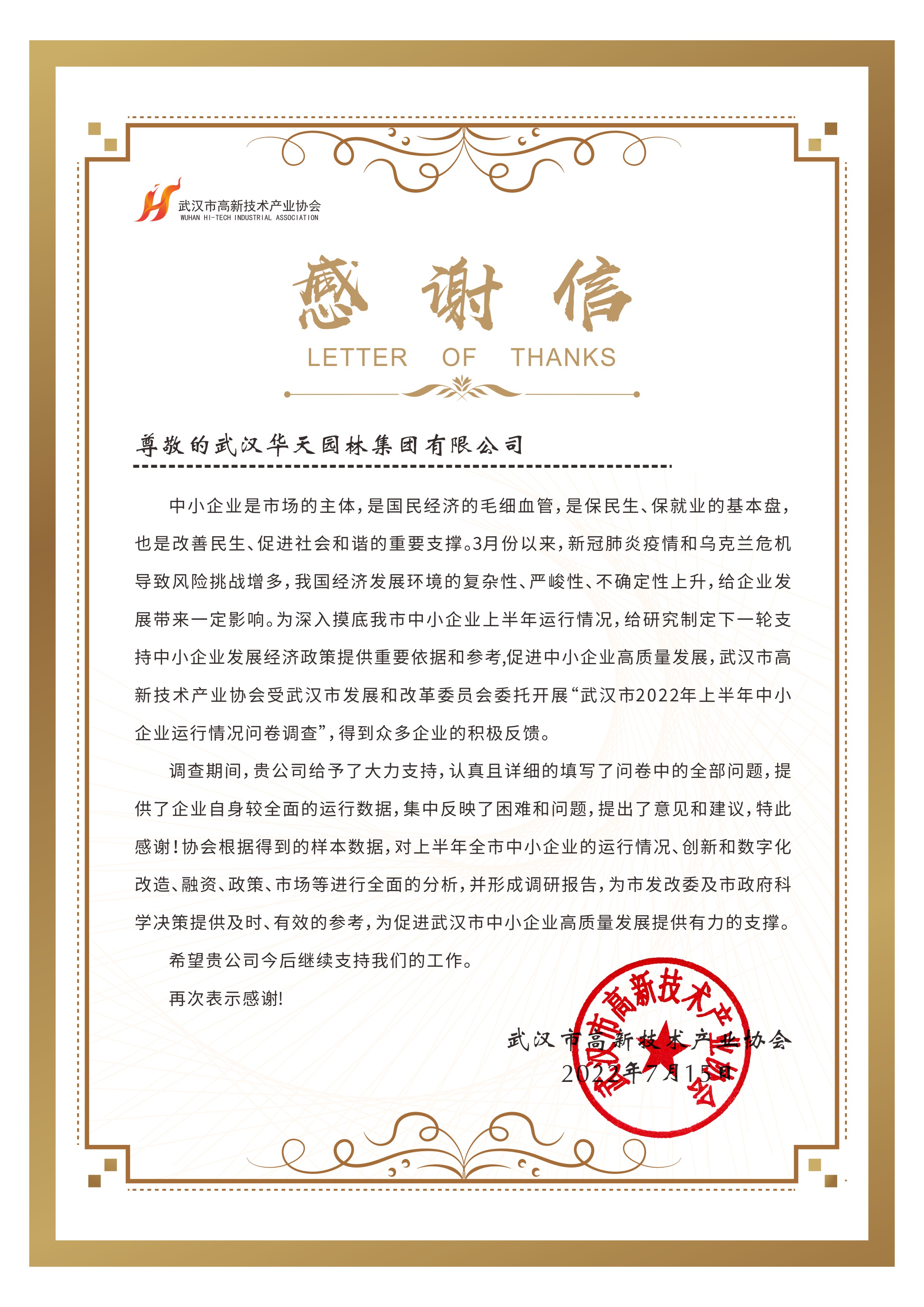 華天園林加入武漢市高新技術(shù)產(chǎn)業(yè)協(xié)會(huì)